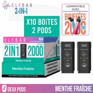 pod pro elfabar contiennent 2 ml de e-liquide aux sels de nicotine selon le dosage choisi. Et son vendu en pack de 2 recharges elfbar spécialement pensé pour la batterie ELFA. Vous pourrez retrouver les pods Elfa en bureau de tabac pour un prix entre 12€ et 10€. Néanmoins, sur Majorsmoker.com, nous vous proposons les