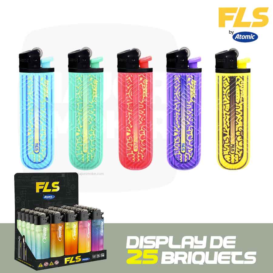Proposé en lot de 25, le briquet FLS Indien met en avant une palette de couleurs vives et variées. Les mélanges de bleu, vert, rouge, violet et jaune apportent un rendu visuel riche, parfaitement adapté à une présentation en quantité.