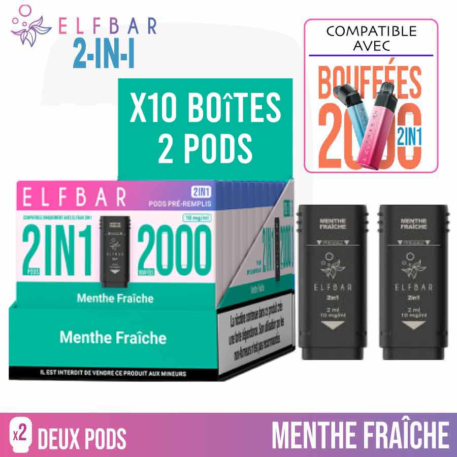 Major Smoker > Vape > Boite de 10 Pods ELFBAR 2in1 Menthe Fraîche | ELFBAR Puff Rechargeable