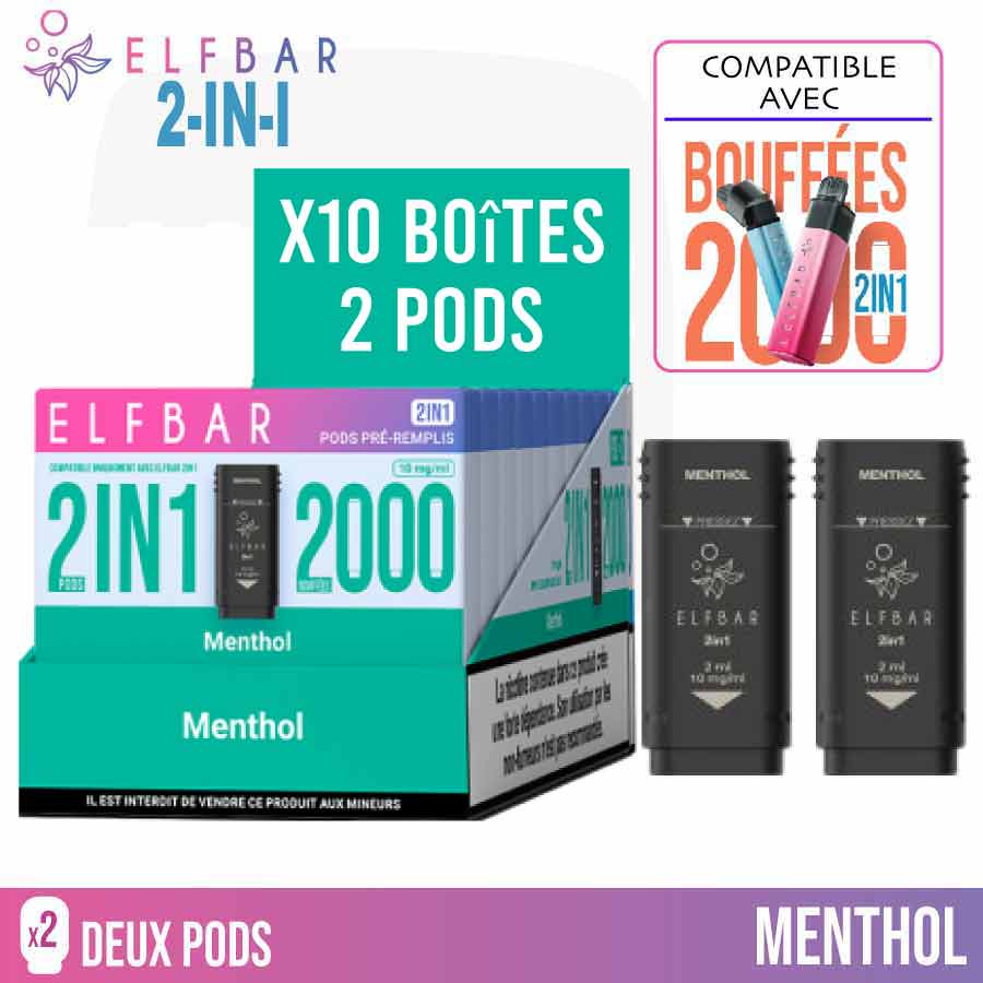Boite de 10 Pods ELFBAR 2in1 Menthol | ELFBAR Puff Rechargeable