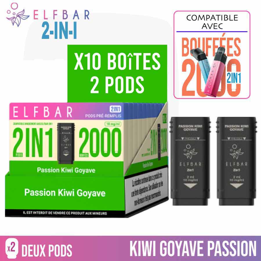 Major Smoker > Vape > Boite de 10 Pods ELFBAR 2in1 Passion Kiwi Goyave | ELFBAR Puff Rechargeable
