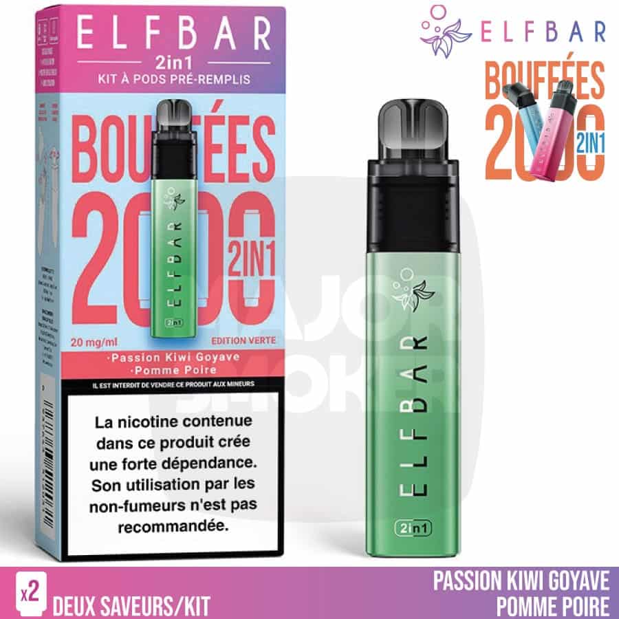 Major Smoker > Vape > ELFBAR 2 en 1 | Edition Verte | Puff Rechargeable Double Saveur