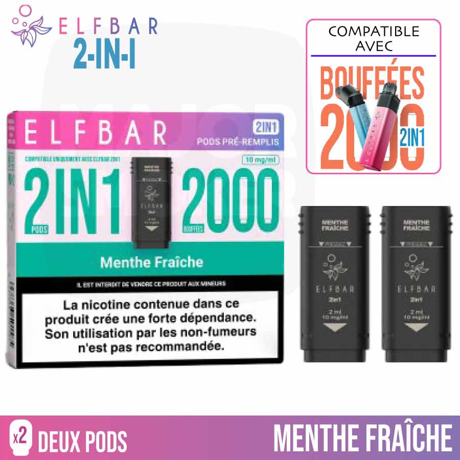 Major Smoker > Vape > ELFBAR 2in1 Recharge Menthe Fraîche | ELFBAR Puff Rechargeable