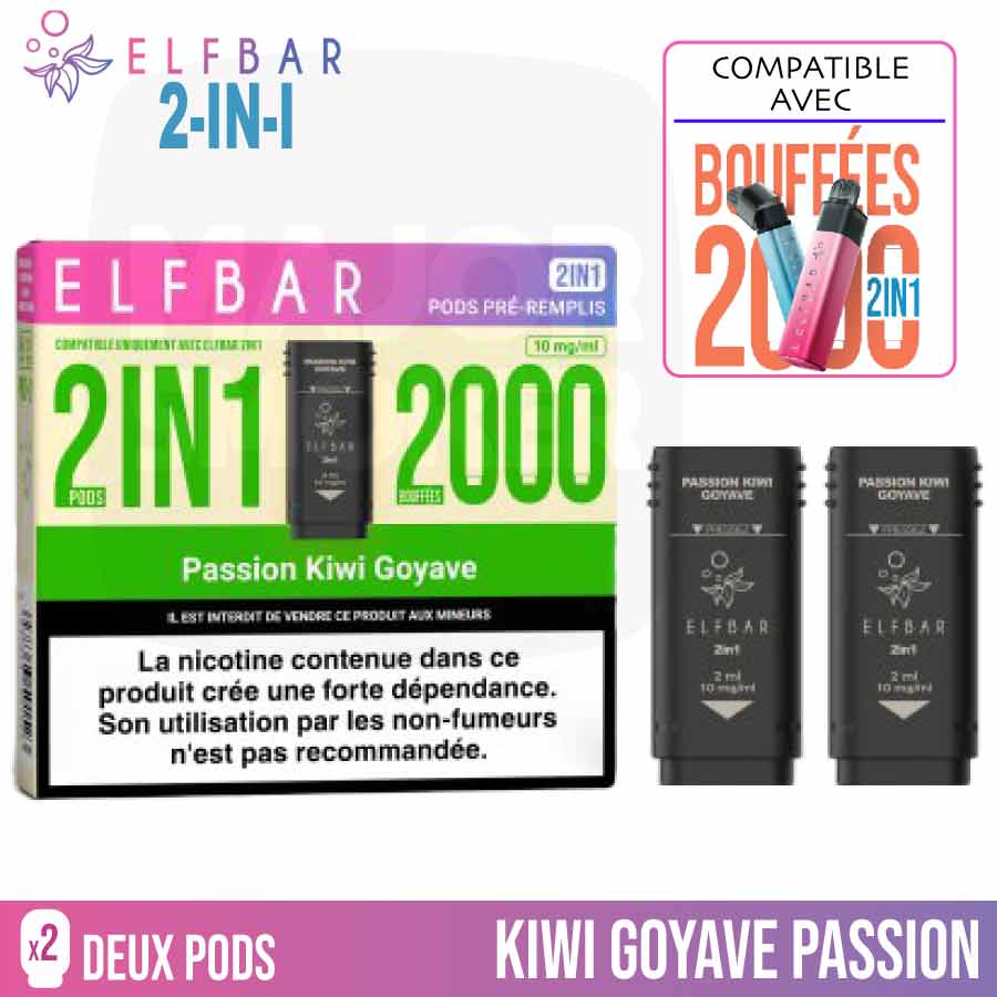 Major Smoker > Vape > ELFBAR 2in1 Recharge Passion Kiwi Goyave | ELFBAR Puff Rechargeable