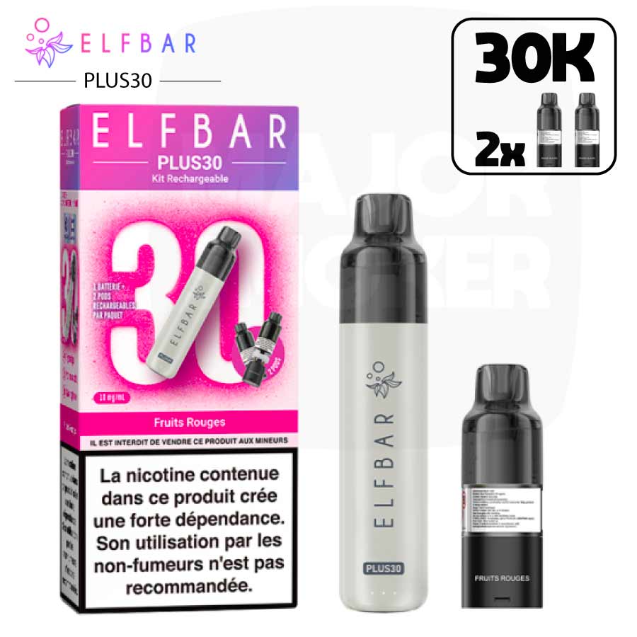 Major Smoker > Vape > Elfbar Kit 30plus | saveur Fruits Rouges | Puff Rechargeable
