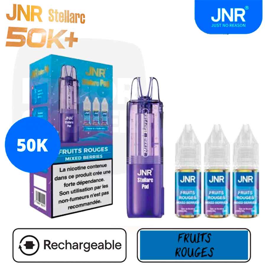 La cartouche Stellarc JNR Mixed Berries est compatible uniquement avec la puff Stellarc de la marque jnr. Son profil aromatique repose sur un mélange de fruits rouges. Le réservoir intégré de 2 ml est remplissable par le côté, et trois fioles d’e-liquide jnr de 10 ml sont fournies. L’autonomie totale atteint jusqu’à 50 000 bouffées.